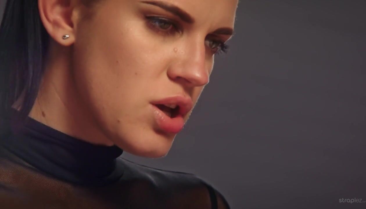 Зрелая похотливая брюнетка хорошо трахает страпоном скромную сучку Ann Joy в колготках в разных позах