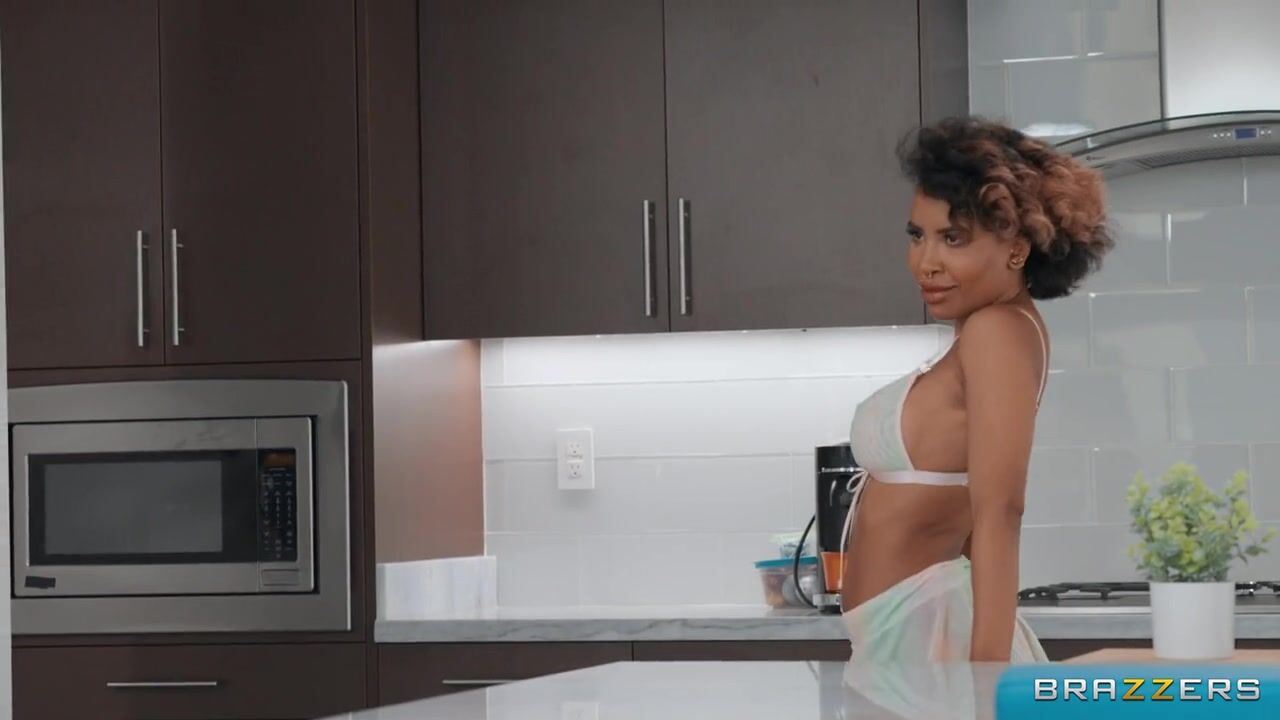 Черная сексуашка Demi Sutra обожает лесбийские шалости, она со страпоном натягивает негритяночку на кухне