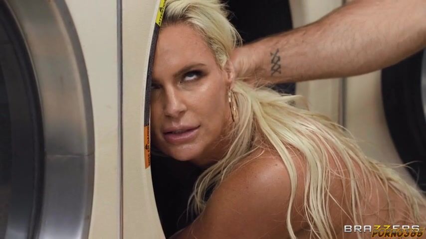 Зрелая блондинка из браззерс Феникс Мари решила постирать трусики и получила в прачечной большой член лысого мужика прямо в рот